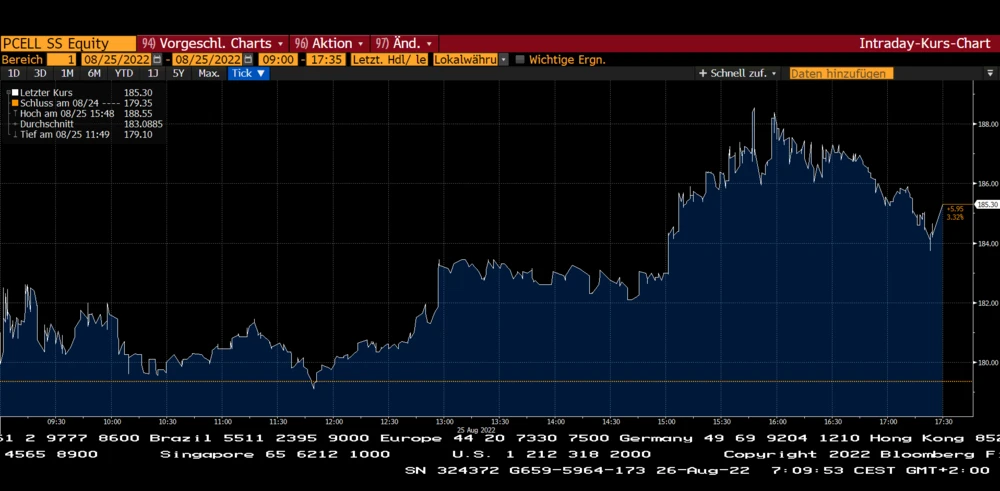 Die Nachricht, dass Plug Power und Amazon einen Vertrag zur Lieferung von Wasserstoff unterzeichnet haben, lief um 15 Uhr Mitteleuropäischer Zeit über den Ticker. Das Papier von PowerCell zog daraufhin auf Intraday-Basis an und verließ schlussendlich den Handel mit einem Plus von 3,3 Prozent.