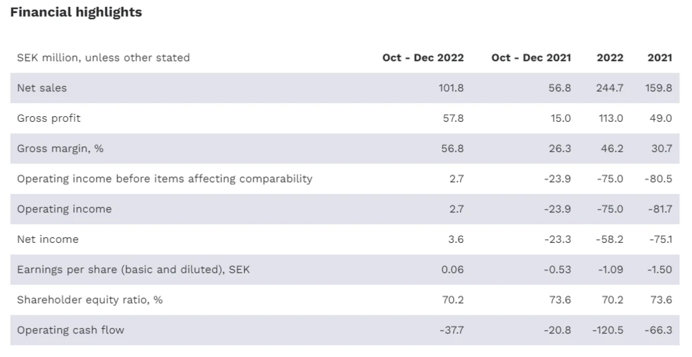 Die Nettoerlöse stiegen im letzten Quartal um 79 Prozent auf 101,8 Millionen Schwedische Kronen (9,2 Millionen Euro). PowerCell konnte in den drei Monaten die Bruttomarge massiv von 26,3 Prozent im Vorjahreszeitraum auf knackige 56,8 Prozent ausweiten. Die Folge: Die Schweden verzeichneten einen schmalen Nettogewinn von 3,6 Millionen Kronen oder umgerechnet 0,06 Kronen je Aktie.