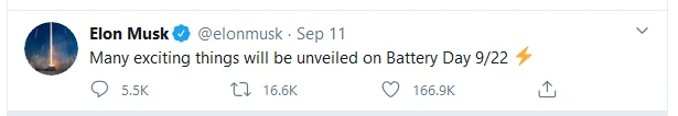 Vor wenigen Tagen hat Elon Musk das Interesse der Anleger wieder auf Tesla gelenkt. In einem Tweet rührte der Tesla-Chef kräftig die Werbetrommel für den Elektroauto-Hersteller und kündigte "viele aufregende Dinge" für den am 22. September stattfindenden „Battery-Day“ an.
