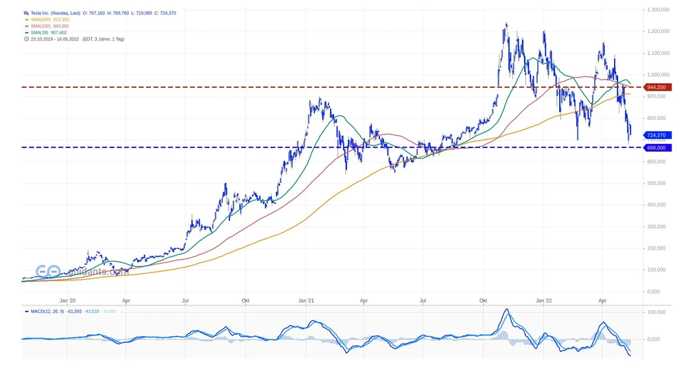 Aus fundamentaler Sicht treffen die Stromer von Tesla nach wie vor auf eine sehr starke Nachfrage. Die langfristigen Aussichten für Tesla bleiben gut. Die Aktie hat den wichtigen Support bei 700 Dollar verteidigt. Im Anschluss hat das Papier wieder nach oben gedreht. Jetzt gilt es, die Marken von 788, 819 und 851 Dollar zu nehmen, um sich an die wichtige 200-Tage-Linie bei 914 Dollar heran zu arbeiten.