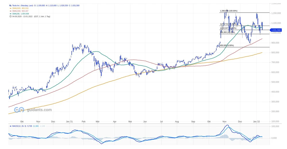 Zuletzt hat Goldman Sachs das Kursziel für Tesla auf 1.200 Dollar angehoben. Ähnlich optimistisch äußerte sich Emmanuel Rosner von der Deutschen Bank. Der Analyst geht davon aus, dass die Auslieferungszahlen darauf hindeuten, dass Tesla die Erwartungen im Jahr 2022 übertreffen wird. Rosner hält aufgrund dessen 1.200 Dollar für möglich.