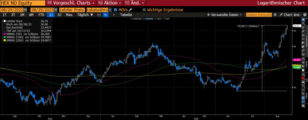 Hexagon Composites in Norwegische Kronen (Quelle: Bloomberg)