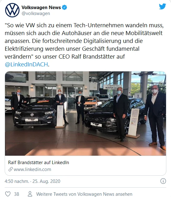 Die Nachfrage nach dem ID.3, dem ersten Elektroauto von Volkswagen das auf dem Modularen E-Antriebs-Baukastens (MEB) gebaut wird, habe die Erwartungen bei weitem übertroffen", erklärte Dirk Weddigen. Chef des deutschen Volkswagen- und Audi-Händlerverbandes, in einem Interview mit dem Münchner Merkur. "Viele Marktbeobachter werden sich wundern, wie schnell wir Tesla mit dem ID.3 überholen werden", ergänzt Weddigen.