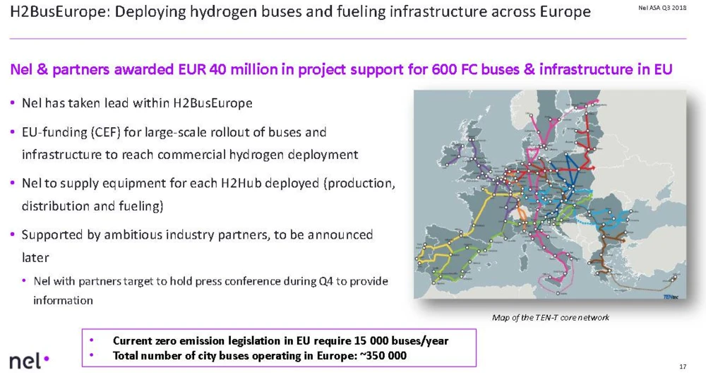 Everfuel und Nel haben einen langfristigen Exklusiv-Vertrag über die Lieferung von Wasserstoff-Stationen und Elektrolyseure geschlossen. Den potenziellen Wert des Deals beziffert Nel auf bis zu 100 Millionen Euro. Everfuel benötigt zunächst acht Millionen Euro, um die ersten Aktivitäten zu finanzieren.