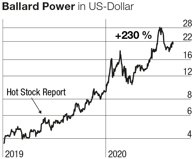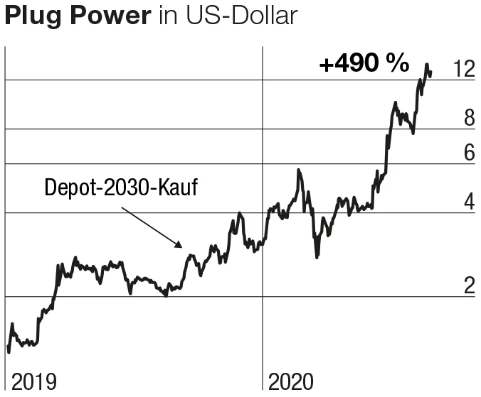 Das Besondere am Plug-Power-Hot-Stock: Man lebt nicht nur von solchen Visionen, sondern treibt seit Jahren erfolgreich die Etablierung von Wasserstoffsystemen für die E-Commerce-Lager von Amazon oder Walmart voran. Und das Geschäft mit Brennstoffzellen-Gabelstaplern boomt. Mittlerweile werden 30 Prozent aller Lebensmittelverkäufe der USA mit Wasserstoff- statt Batterielagerfahrzeugen ausgeliefert. Auch in Corona-Zeiten ist die Nachfrage ungebrochen. Die reinen E-Commerce-Erlöse des Plug-Power-Großkunden Walmart stiegen etwa im zweiten Quartal um beeindruckende 97 Prozent.