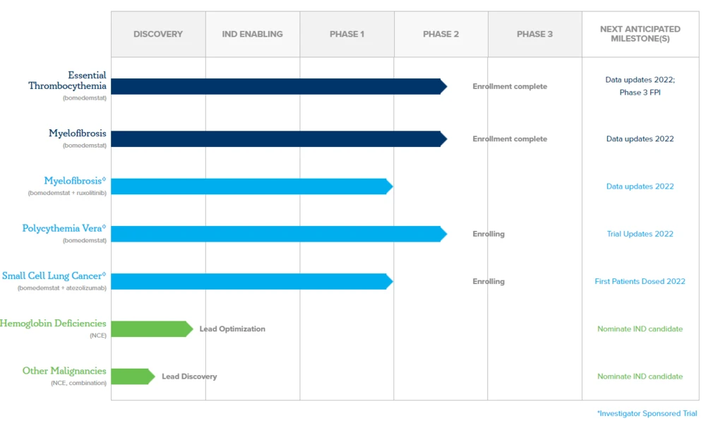 Der Hauptfokus von Imago BioSciences liegt derzeit auf der Substanz Bomedemstat, die derzeit die klinische Entwicklung in verschiedenen Indikationen durchläuft, darunter auch gegen Myelofibrose. Dabei handelt es sich um eine bösartige Erkrankung des Knochenmarks.
