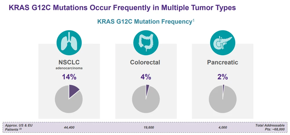 KRAS ist für eine Vielzahl von Krebserkrankungen relevant. Mit dem Medikament, welches auf die KRAS-G12C-Mutation abzielt, könnte Amgen unter anderem bestimmte Patientengruppen mit nicht-kleinzelligem Lungenkrebs, Darmkrebs und Bauchspeicheldrüsenkrebs adressieren.