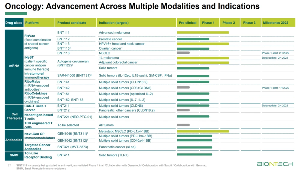 Die Mainzer Biotech-Schmiede hat mit der erfolgreichen Entwicklung des Corona-Impfstoffs Comirnaty eine starke finanzielle Basis für die Weiterentwicklung der breiten Onkologie- und Infektionskrankheiten-Pipeline geschaffen. In der zweiten Hälfte des Jahres 2022 ist mit einigen News und Updates zu rechnen.