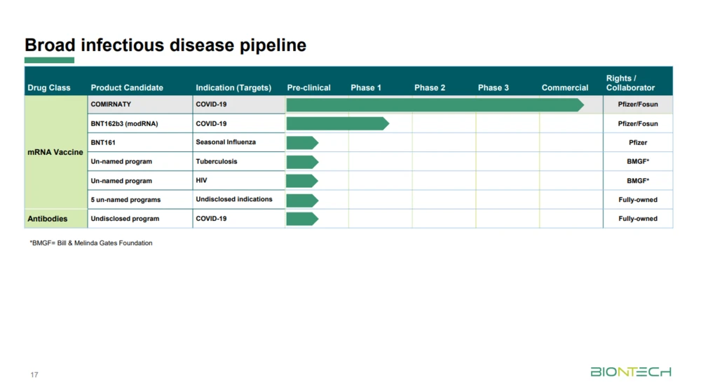 Mit der erfolgreichen Entwicklung eines hochwirksamen Corona-Impfstoffs hat BioNTech das enorme Potenzial der mRNA-Technologie unter Beweis gestellt. Die Chancen, dass der Ansatz auch gegen andere Infektionskrankheiten funktionieren kann, stehen gut. Die Mainzer haben bereits eine breite Pipeline aufgebaut, wenngleich sich viele Projekte noch in der präklinischen Phase befinden.
