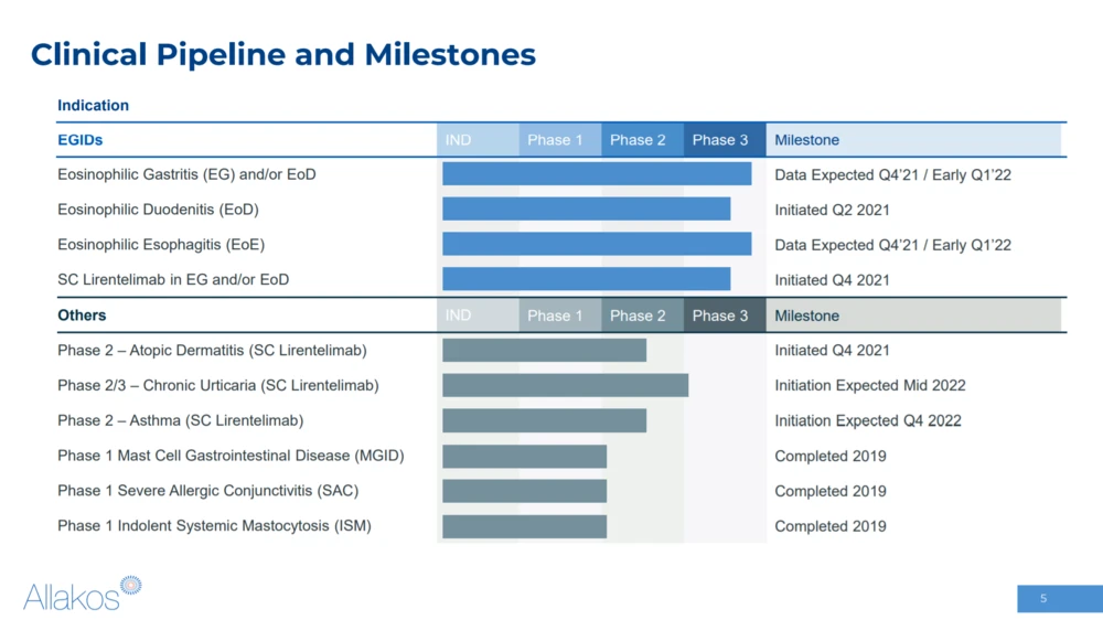 Die Biotech-Gesellschaft Allakos hat am Dienstag bereits die Top-Line-Ergebnisse der Phase-3-Studie ENIGMA 2 sowie Phase-2/3-Daten der KRYPTOS-Studie veröffentlicht, in denen der Wirkstoff Lirentelimab bei eosinophilen Magen-Darm-Erkrankungen untersucht wurde.