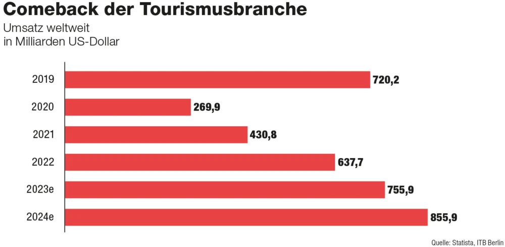 Im Zuge der Coronakrise ist der weltweite Reisemarkt massiv eingebrochen. Der globale Umsatz der Branche fiel von über 700 Milliarden Dollar im Jahr 2019 auf nur noch knapp 300 Milliarden Dollar im Jahr 2020 (s. Grafik). Doch die Reiselust ist ungebrochen. In diesem Jahr dürfte das Vor-Corona-Niveau bereits wieder übertroffen werden. Analog dazu entwickelte sich auch der Reise-Impfstoff-Markt. Im Zuge der Pandemie brachen die Umsätze deutlich ein, mittlerweile ist die Nachfrage aber wieder höher denn je.