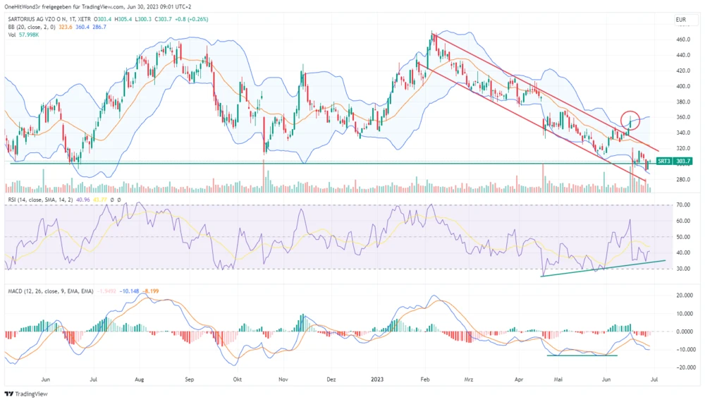 Die Vorzüge von Sartorius sind eine laufende Empfehlung von DER AKTIONÄR. Bislang geht die Wette auf eine Bodenbildung im Bereich von 300 Euro auf, technisch stehen die Chancen auf einen Rebound nicht schlecht. Wer noch nicht investiert ist, kann daher bedenkenlos zugreifen, beachtet aber den Stopp bei 280 Euro.