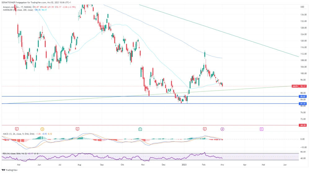 Amazon sollte im Bereich von 90 bis 81,43 Dollar viel Unterstützung bekommen und von dort aus die nächste Aufwärtsbewegung starten können. DER AKTIONÄR hält an seiner Empfehlung fest.