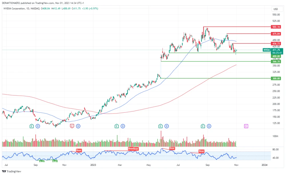 Bei der Nvidia-Aktie bieten sich Bullen und Bären einen starken Schlagabtausch. Bei der psychologisch wichtige 400-Dollar-Marke stützt weiterhin der starke Support. Ein erster Rücksetzer wurde schnell wieder gekauft – ein gutes Zeichen. Bei 366 Dollar steht der nächste Support bereit. Nvidia bleibt weiterhin eine starke Aktie mit KI-Potenzial und Rücksetzer sind Kaufchancen.