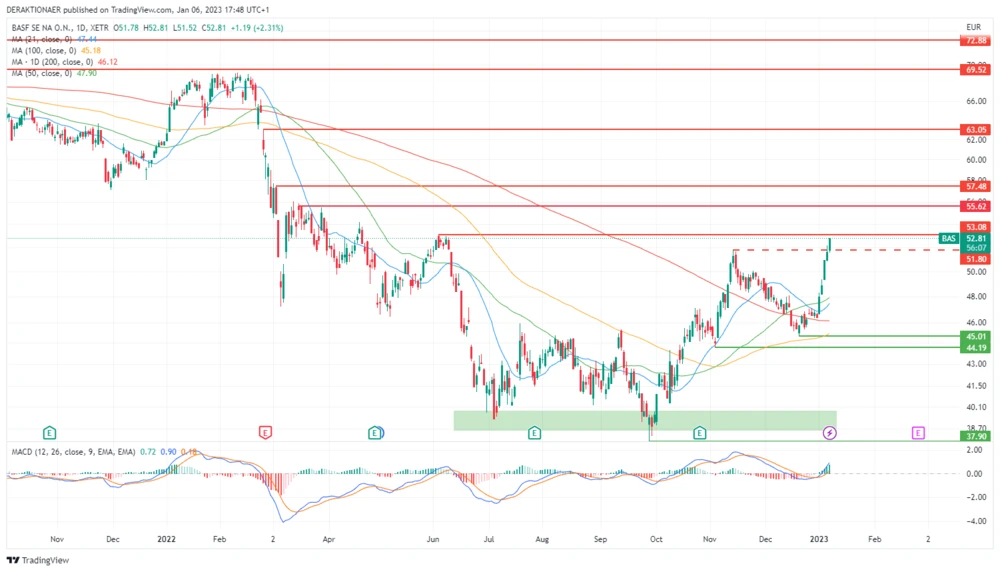 Nach einem schweren Börsenjahr 2022 startet die neue Periode umso freundlicher, zumindest für den DAX und Indexmitglieder. Eine der Top drei Papiere ist die BASF-Aktie. In der ersten Handelswoche legte der Kurs bereits zweistellig zu und glänzt mit Relativer Stärke zum Gesamtmarkt. Zusätzlicher Rückenwind kommt nun von JPMorgen.