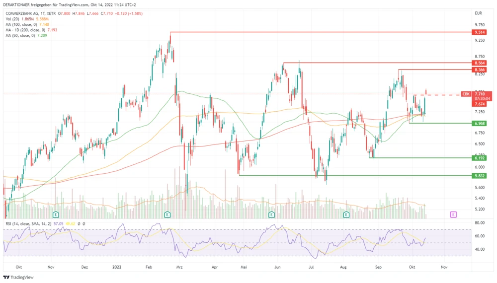 Nach einer turbulenten Handelswoche legte am gestrigen Donnerstag die Börse einen starken Rebound auf das Parkett. Damit hellte sich auch das Chartbild bei der Commerzbank-Aktie weiter auf. Die Bullen haben bei dem Titel ein wichtiges Zeichen gesetzt. DER AKTIONÄR erklärt, welche Marken für Anleger nun von hoher Bedeutung sind.