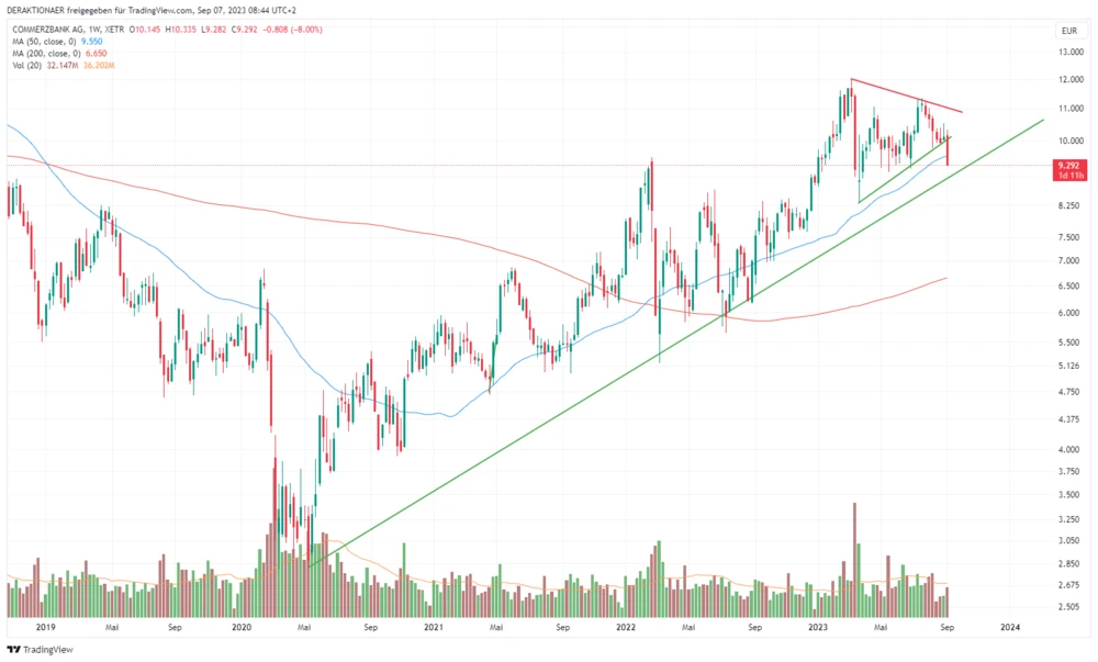 An den Märkten kam das alles andere als gut an. Der Kurs löste infolge des kurzfristig negativen Newsflows eine Dreiecksformation nach unten auf. Dabei rutschte der Titel unter die Dreiecksbegrenzung, die nahe der 200-Tage-Line bei 9,91 Euro verlief – ein starkes Verkaufssignal.