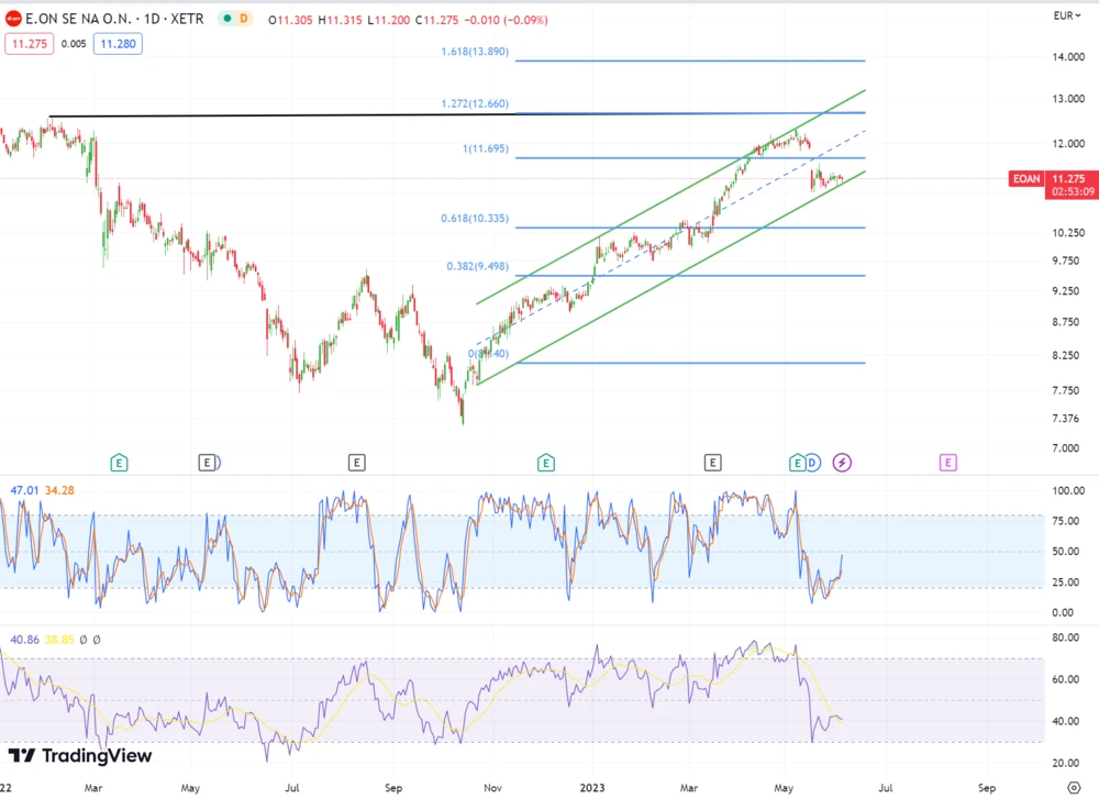 Sollte E.on es schaffen, die 100%-Fibonacci-Linie bei 11,69 Euro hinter sich zu lassen, kann die Aktie relativ zügig in Richtung des Februar-Hochs 2022 bei 12,66 Euro steigen. Im Falle eines Ausbruchs über das Februar-Hoch sollte E.on bis zur 161%-Fibonacci-Erweiterungslinie ansteigen, was einem Kurspotenzial von etwa 22 Prozent entspricht.