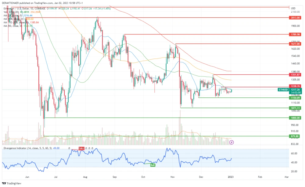 Die Bullen starten mit Rückenwind in das neue Jahr, da neben der freundlichen Stimmung auch die Unterstützungen bei 1.150 Dollar sowie 1.071 Dollar standhaft blieben. Die Chancen, dass 2023 ein besseres Jahr für Kryptowährungen wird, stehen gut. Allerdings müssen Anleger vorerst mit erhöhter Volatilität rechnen und sollten entsprechend vorsichtig agieren.