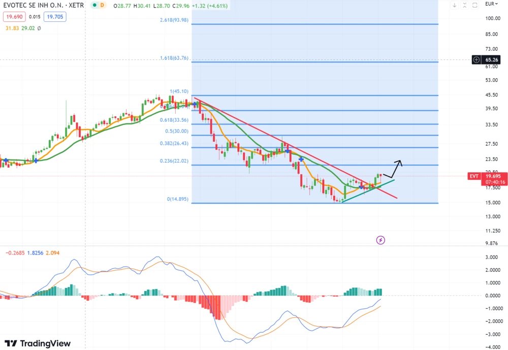 Aus technischer Sicht stellt ist Evotec positiv zu bewerten. Anleger bleiben dabei.