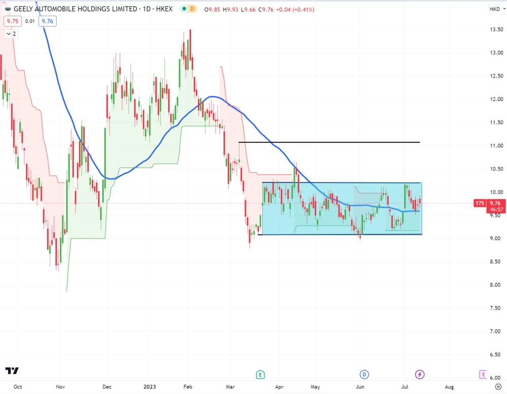 Seit März notiert die Geely-Aktie in einer Seitwärtsrange zwischen 9,08 Hongkong-Dollar und 10,20 Hongkong-Dollar. Positiv ist, dass der Supertrend-Indikator ein Kaufsignal ausgelöst hat und es dem Kurs gelungen ist, den GD50 nach oben zu durchkreuzen. Für ein starkes Kaufsignal ist jedoch noch ein Ausbruch über die Oberseite der Range erforderlich. Dann wäre der Weg zum März-Hoch bei 11,06 Dollar wieder frei.