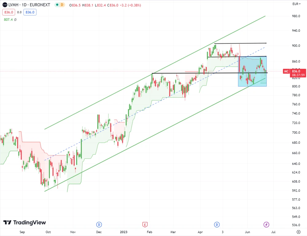 Seit Mai tritt die LVMH-Aktie auf der Stelle. Letzte Woche versuchten sich die Papiere des französischen Luxus-Konglomerats noch vergeblich an einem Ausbruch nach oben. Hoffnung gibt es trotzdem, da der Aufwärtstrend weiterhin intakt ist. Nun könnte es dank einer positiven Studie von JPMorgan auch neuen Schwung geben.