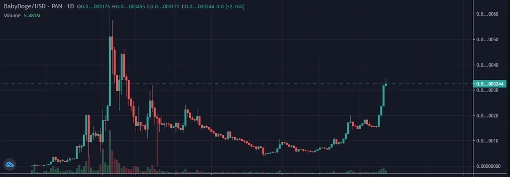 Der Nachkomme des Dogecoin, der sogenannte Baby Doge Coin, ist nach dem ersten Hype im Juni massiv abgestützt. Seit Oktober startet der Coin wieder durch und hat seitdem über 550 Prozent Gewinn generiert. Laut der Plattform Dextools beläuft sich die aktuelle Marktkapitalisierung auf fast 600 Millionen Dollar.
