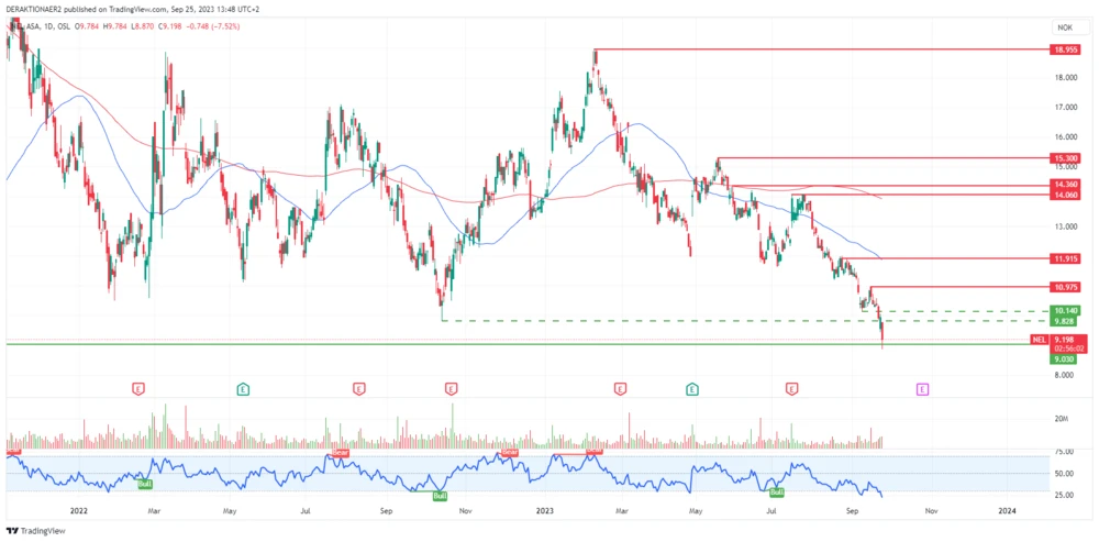 Mit einem Minus von aktuell 8,2 Prozent ist es ein harter Montag für Investoren bei der Nel-Aktie. Der Kurs notiert nun so tief wie zuletzt im Corona-Crash im März 2020. Etwas Hoffnung macht, dass die Bullen zur aktuellen Stunde eine erste Stabilisierung versuchen. Auch der RSI-Indikator ist mit einem Wert von 22 so tief wie seit Jahren nicht mehr. Selbst am Tiefpunkt des Corona-Crashs notierte der Indikator nicht so tief.