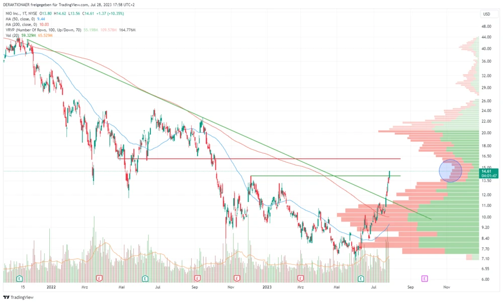 Von Investitionen der chinesischen Regierung dürfte Nio profitieren. Auch ansonsten müssen sich die Stromer von Nio weder vor BYD noch vor Tesla oder den deutschen Herstellern verstecken. Neben einer attraktiven Bewertung kommt nun ein spannendes Chartbild. Schafft es Nio in den nächsten Monaten endlich, die PS auf die Straße zu bekommen, hat die Aktie deutliches Upside-Potenzial.