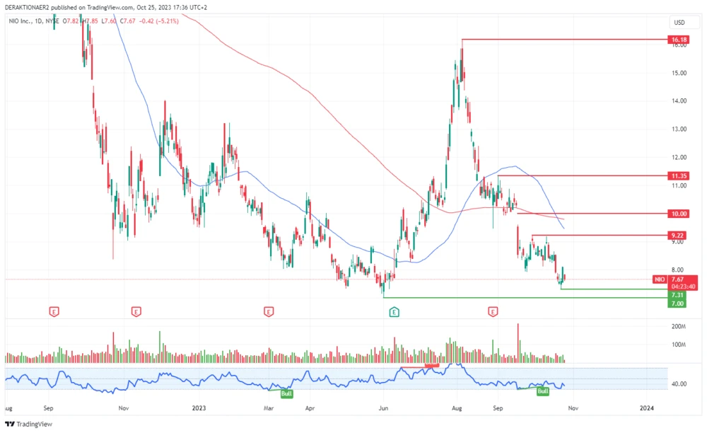 Die Nio-Aktie steht weiter unter Druck und es wird vorerst ungemütlich bleiben. Anleger sollten an der Seitenlinie bleiben, bis sich eine nachhaltige Bodenbildung abgezeichnet hat. Fällt der Titel unter das Jahrestief, wird ein starkes Verkaufssignal ausgelöst.