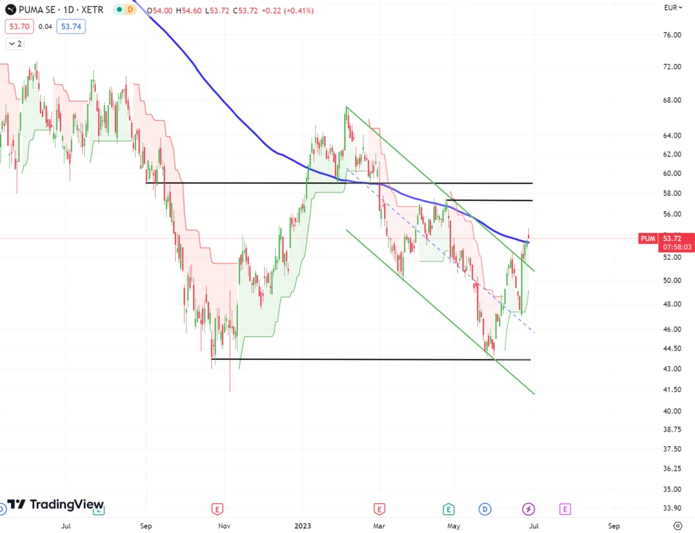 Lange hat es gedauert, dann ging alles ganz schnell: Begleitet von positiven Aussagen der kanadischen Bank RBC hat die Puma-Aktie einen wichtigen Widerstand durchstoßen. Nach Monaten erheblicher Kursverluste könnte es nun für den Sportartikel-Hersteller aus Herzogenaurach deutlich weiter nach oben gehen.