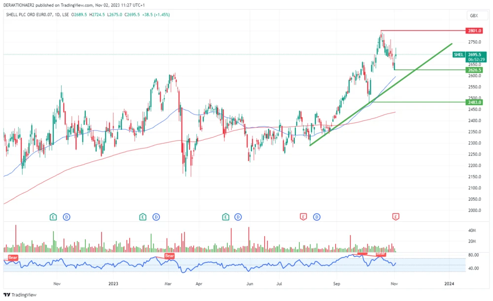 Der DAX hat am Donnerstag den Weg zurück über die Marke von 15.000 Punkten gefunden. Damit setzt sich der positive Trend im neuen Monat November fort, nachdem der Oktober sehr schwach gelaufen war. Ohnehin sind die Anleger nach der gestrigen Sitzung der Fed positiv gestimmt. Bei der Shell-Aktie bahnt sich nun der nächste Ausbruch an.