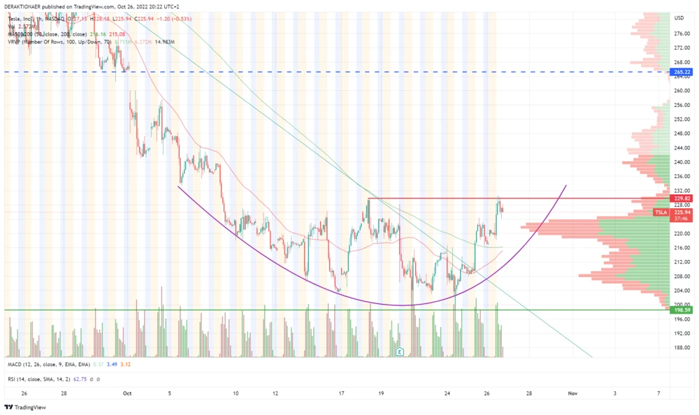 Die Tesla-Aktie konnte im Tagesverlauf am Mittwoch das Zwischenhoch bei 229,82 Dollar überwinden, wodurch ein Kaufsignal entstand. Bereits am Dienstag, dem Tag der Kaufempfehlung, hatte der Kurs um über fünf Prozent zugelegt.