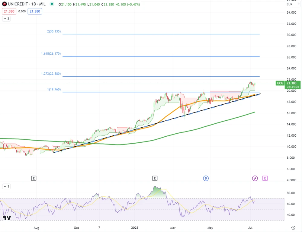 Mit dem Kaufsignal im Supertrend-Indikator stehen die Chancen weiterhin gut, dass sich der Aufwärtstrend fortsetzt. Angesichts des Verkaufssignals im RSI müssen Anleger jedoch mit einem kurzfristigen Rücksetzer auf den GD50 rechnen, bevor wieder höhere Kurse möglich sind. Auf dem Weg zum Kursziel von JPMorgan müssen die Bullen charttechnisch neben der bereits erwähnten Hürde das 161%-Fibonacci-Retracement bei 26,17 Euro hinter sich lassen.