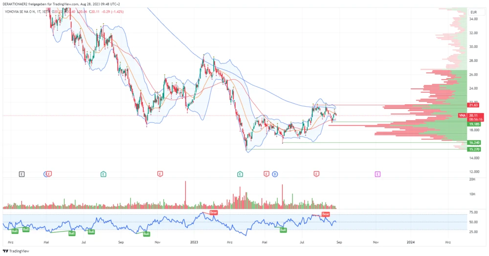 Die Immobilien-Titel wie Vonovia haben 2023 bereits eine wilde Achterbahnfahrt hinter sich. Im März sackte der Kurs auf ein neues Jahrestief bei 15,27 Euro ab. Im Anschluss wagten sich immer mehr Schnäppchenjäger zurück und die Aktie konnte sich erholen. Dieser Trend hielt bis Mitte Juli an, als die Papiere ein frisches Mehrmonatshoch bei 21,63 Euro erreichten.